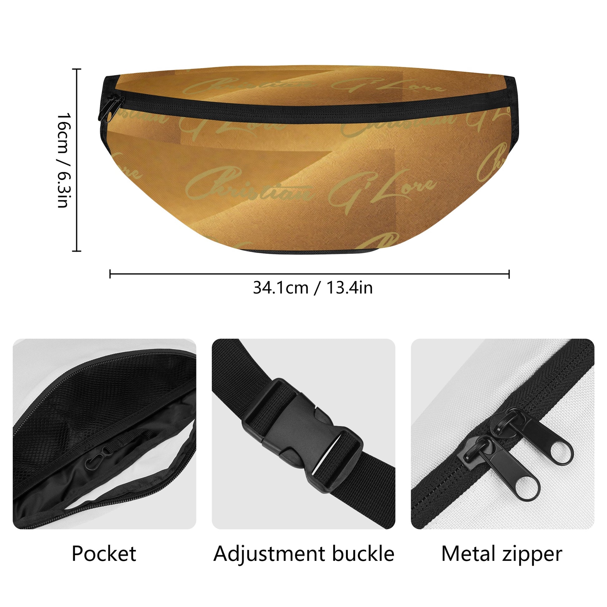 * Strap with plastic buckle allows it to be adjusted as a crossbody bag or a belt bag